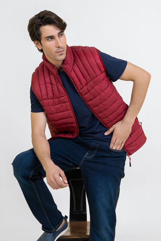 Markhor Maroon Puffer Sleeve Less Jacket T211-T2