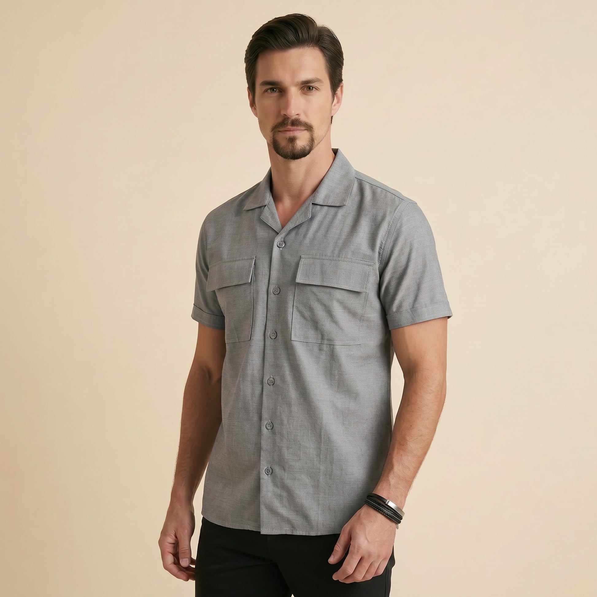 Introducing our Cuban Collar Shirt in refined grey — crafted from fine Oxford fabric and elevated with a sharp double pocket design. A perfect balance of structure and ease for everyday sophistication.